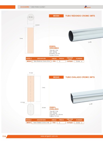 M5540 Tubo Ovalado Cromo 3mts PZA $ 10 PZAS Cromo