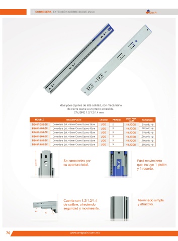BS46P-450-ZC Corredera Ext. 45mm Cierre Suave 45cm JGO $ 10 JGOS Zincado