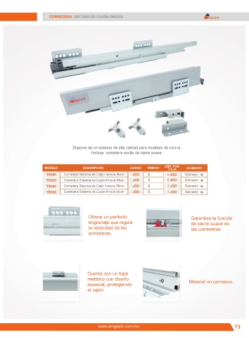 TB450 Corredera Sistema de Cajón Innova 45cm JGO $ 1 JGO Satinado