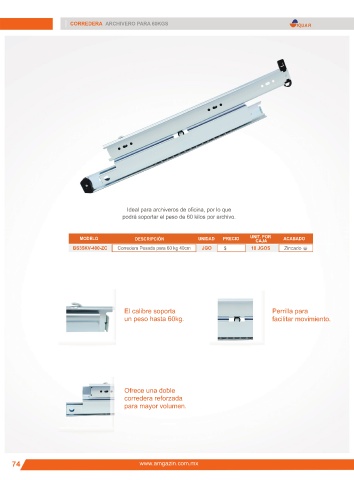 BS35KV-400-ZC Corredera Pesada para 60 kg 40cm JGO $ 10 JGOS Zincado