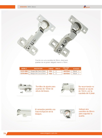 C2701-BNS Bisagra Mini Recta 26mm PZA $ 400 PZAS Niquel