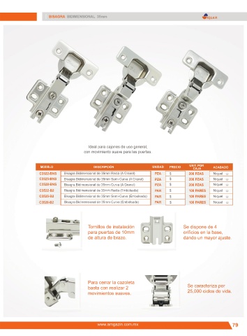 C3522-BNS Bisagra Bidimensional de 35mm Recta (A Granel) PZA $ 200 PZAS Niquel