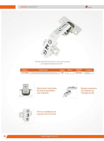 C3325-BNS Bisagra Bidimensional de 90º para Esquina PZA $ 100 PZAS Niquel